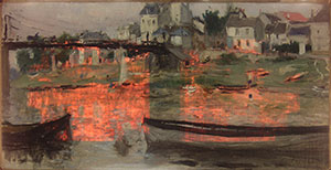 Boote auf der Seine, ca. 1879/80, Öl auf text. Träger, 27,0 x 51,9 cm, WRM Dep. FC 615