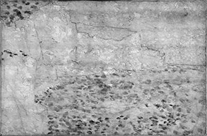 Detail im Streiflicht, Bereich des Kreidefelsens mit sichtbar belassener Grundierung