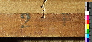 Detail, Formatstempel „2 P“ auf Spannrahmenschenkel (links)