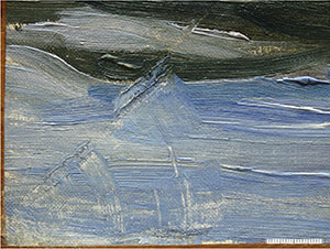 Detail in der linken unteren Ecke mit Wisch- und Kratzspuren, die im noch feuchten Zustand der Farbaufträge und daher möglicherweise bei der Handhabung des Bildes in freier Natur entstanden
