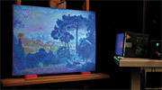 Im Vordergrund stand die zerstörungsfreie Untersuchung zur Bewahrung und zum Schutz der originalen Substanz der Gemälde. Zur Bestimmung der Pigmente wurde aus diesem Grund die zerstörungsfreie VIS-Spektrometrie herangezogen. Auch wenn nicht alle Pigmente der Zeit mit Hilfe dieser Methode zweifelsfrei analysiert werden können, geben die Ergebnisse einen hilfreichen Überblick, der sich in den bisherigen, bereits gut dokumentierten Forschungsstand zu den Pigmenten der Impressionisten ergänzend einreihen lässt (»Vis-Spektrometrie Artikel Dr. Oltrogge). Auf eine materialinvasive Analytik wurde weitgehend verzichtet. Nur einige wenige Gemälde warfen besondere Fragestellungen auf, die allein mit Hilfe einer Beprobung und nachfolgenden Analytik geklärt werden konnten. In diesen Fällen wurden Querschliffe angefertigt und mikroskopisch begutachtet oder Probenmaterial mit Hilfe der FTIR-Spektroskopie, REM, EDX und/oder mikrochemischer Verfahren analysiert. Eine weitere Ausnahme bildeten die untersuchten Holztafeln, die allesamt beprobt und einer holzanatomischen Bestimmung unterzogen wurden, da der derzeitige Forschungsstand in Bezug auf die hölzernen Bildträger der Impressionisten, insbesondere der Neoimpressionisten, noch eklatante Lücken aufweist.